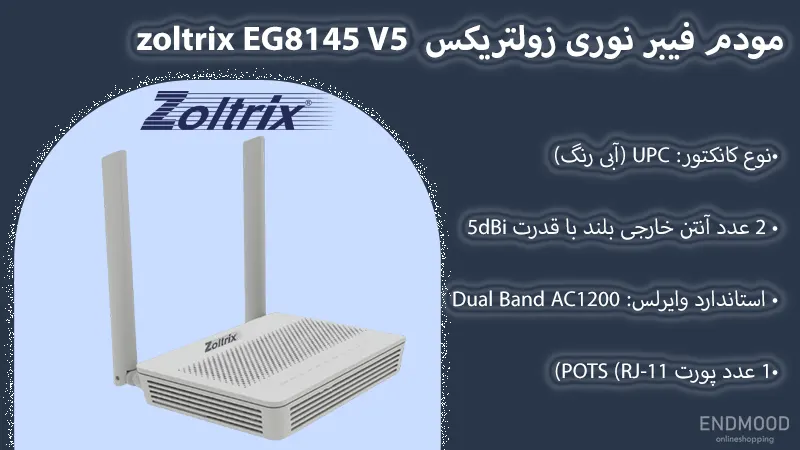 مودم فیبر نوری زولتریکس مدل zoltrix EG8145 V5 (12LED) یک ترمینال شبکه نوری (ONT) حرفهای و قدرتمند است که با داشتن برد کاملاً نو (New Board) و بستهبندی آکبند، از نظر کارایی و سلامت قطعات در بالاترین سطح قرار دارد. این مدل یکی از بهترین انتخابها برای کاربرانی است که به دنبال اینترنت فیبر نوری پرسرعت، پوشش وایفای قوی و امکانات پیشرفته شبکه هستند. اگر قصد خرید مودم فیبر نوری دارید، میتوانید از طریق صفحه محصولات مودم فیبرنوری، محصول مورد نظر خود را انتخاب نمایید.